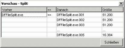 dritten Spalte einen Ausschnitt der Folge der zu erstellenden Datei(en) und deren Größe.
