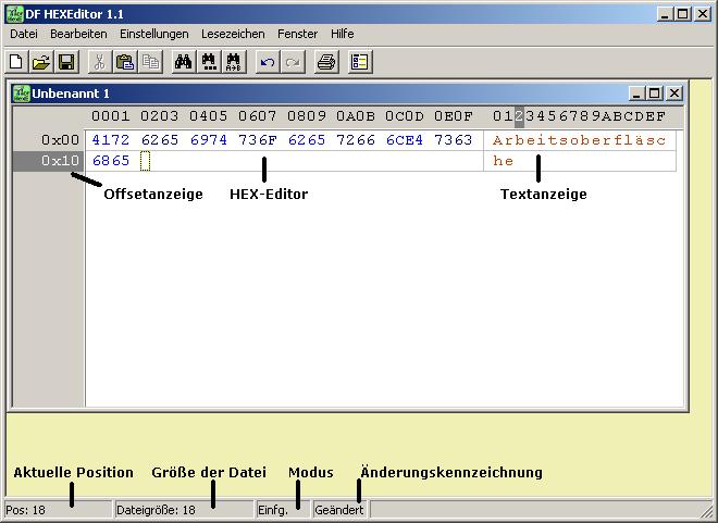 Der HEX-Editor selbst besteht aus zwei Arbeitsbereichen. Im eigentlichen HEX-Editor können Sie die Daten einer