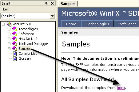 Wenn Sie die Installation des Visual Studios und des WinFX SDK's nicht in die Standardverzeichnisse durchgeführt haben, müssen Sie VORHER entweder die