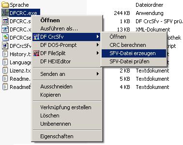 - Der Menüpunkt DF CRC-SFV wird beim Rechtsklick auf ein oder mehrere Dateien angezeigt.