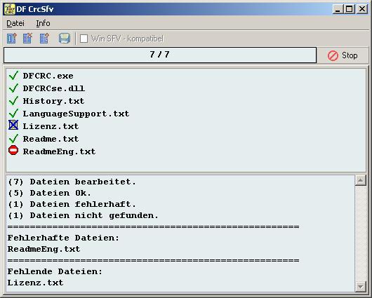- DFCRC /B SFVDatei SFVP Ergebnisdatei