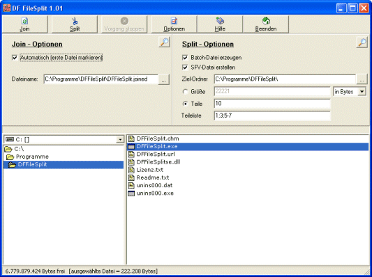 - Verbinden und Teilen (Join/Split) von Dateien bis 2GB