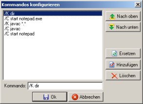 | OK | speichert die Kommandos der Liste und schließt das Fenster |